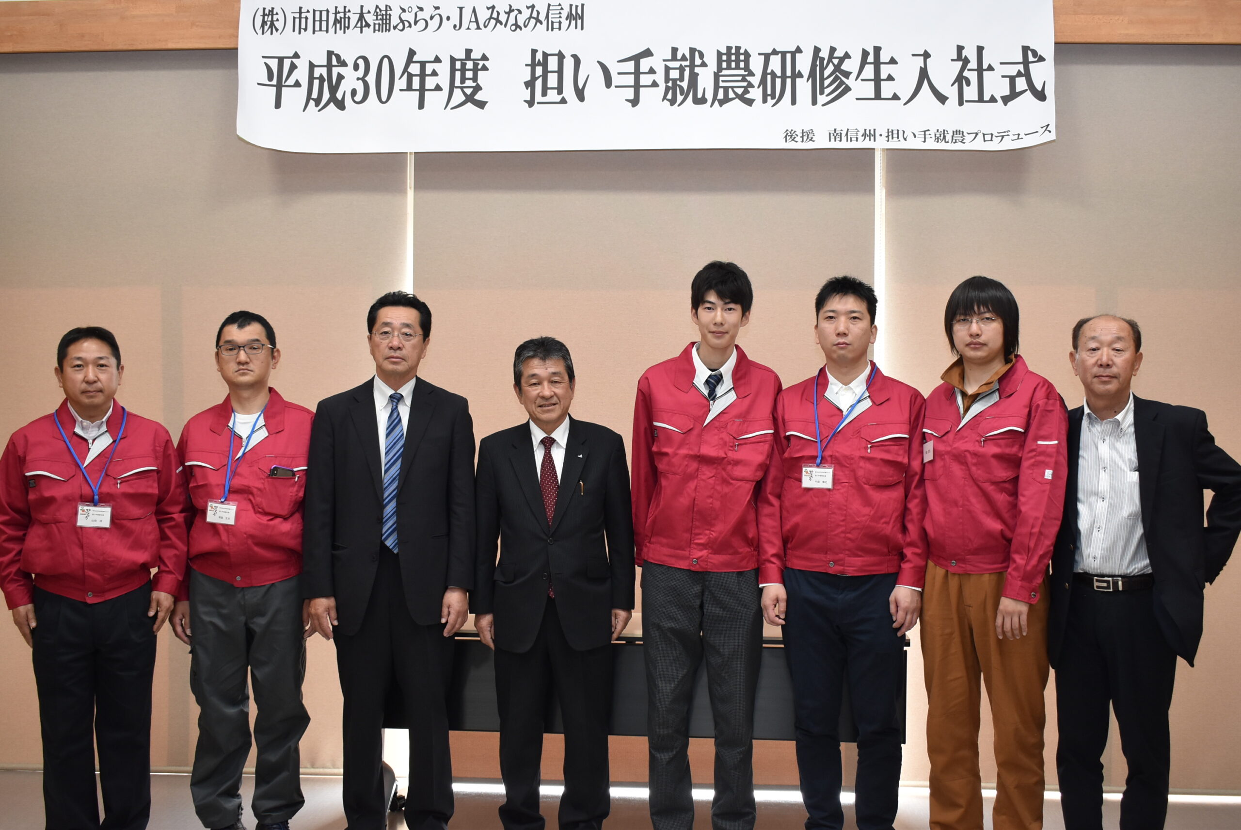 JAみなみ信州が今年度より実施する 「担い手就農研修制度」の第1期生となる研修生5名の入社式が4月3日に行なわれました。