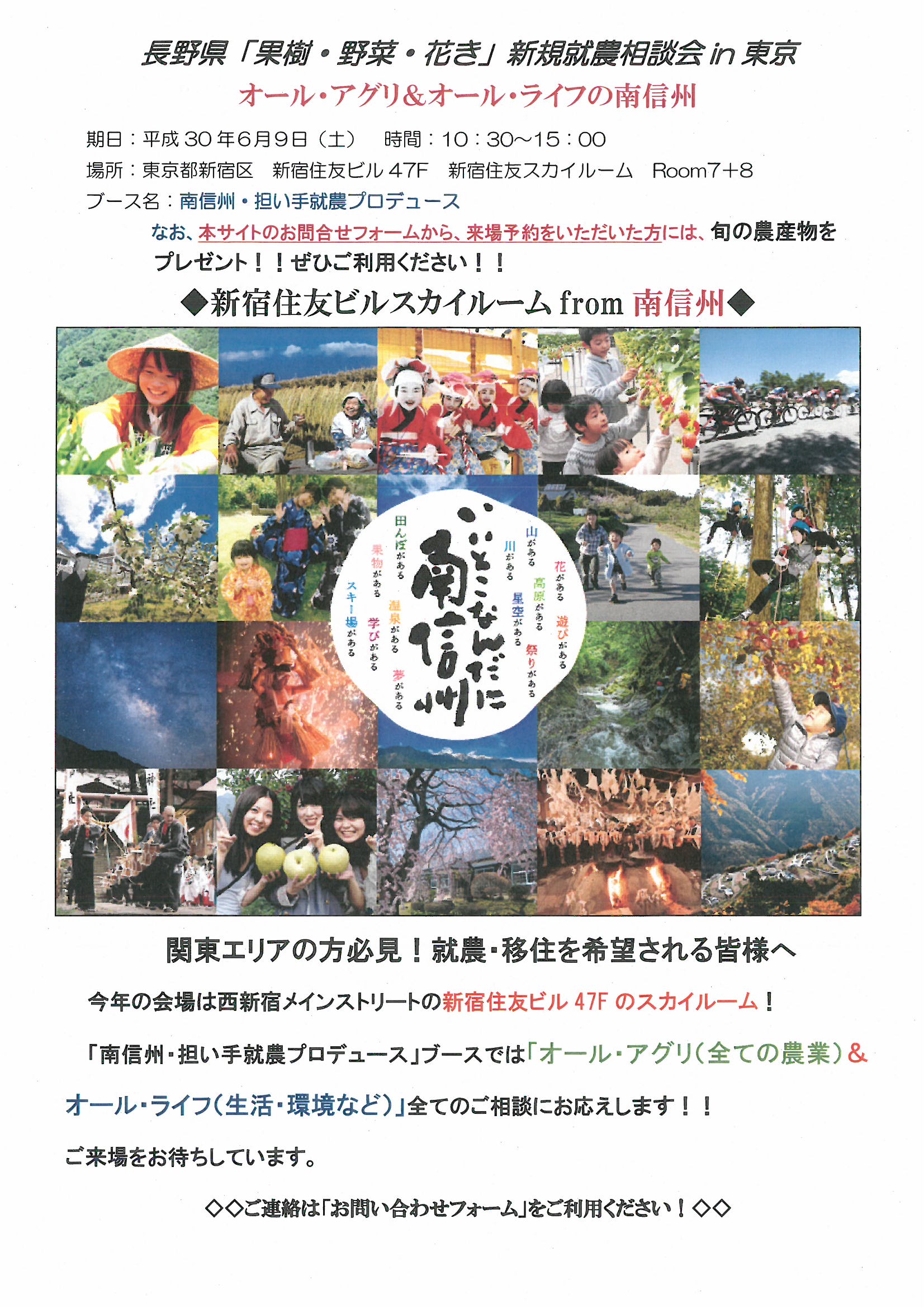 6/9(土)長野県「果樹・野菜・花き」新規就農相談会in東京のお知らせ