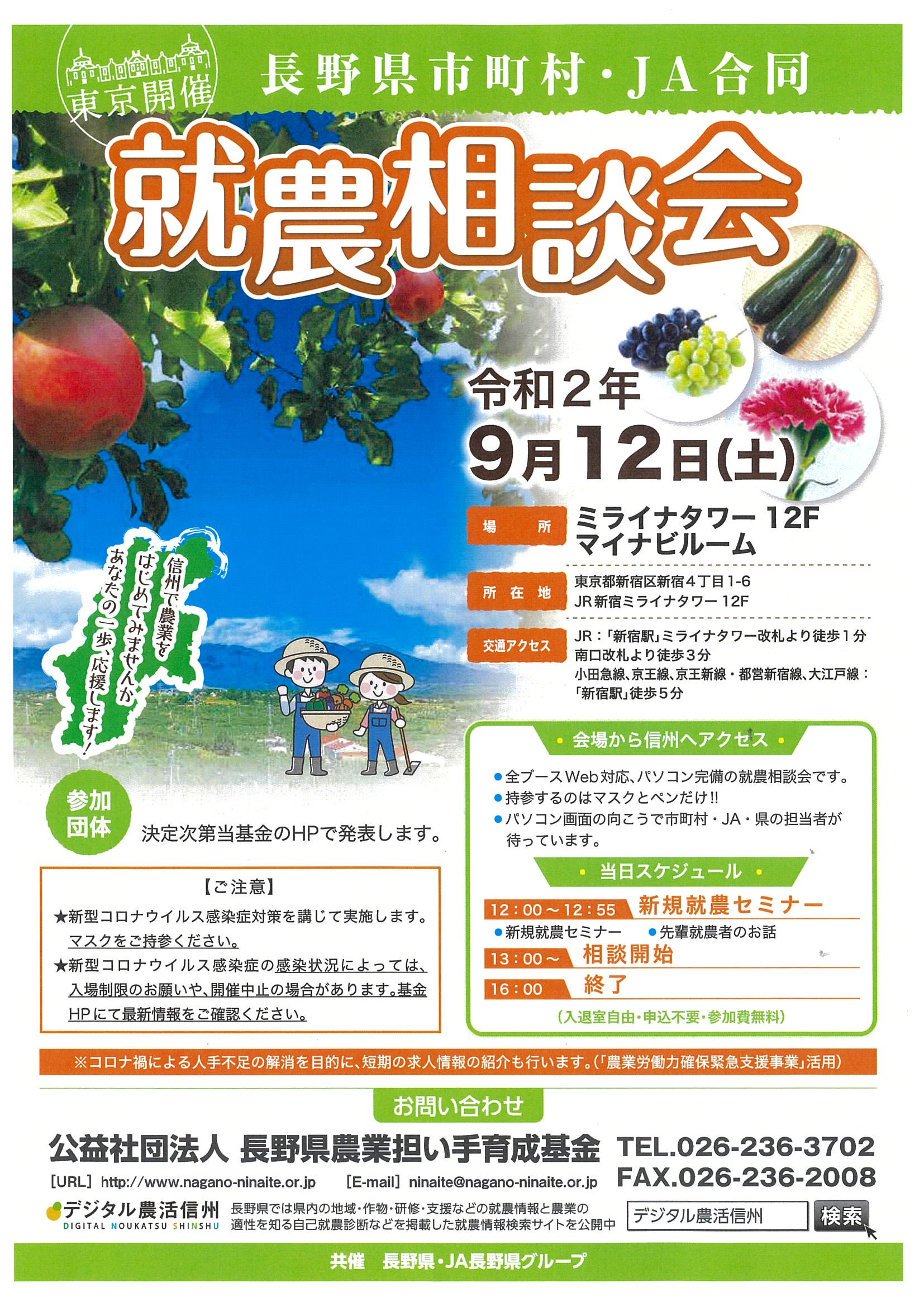 9/12(土)長野県市町村JA合同就農相談会(web)のお知らせ