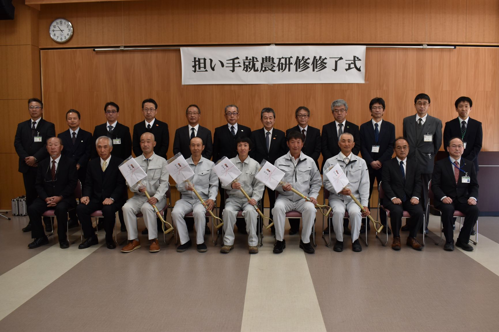 この3月末をもって、2年間の研修を修了した第2期研修生の研修修了式を3月23日に行いました。研修開始時は7名でスタートし、修了に至ったのは5名です。どうか学んだことを忠実に実践し、地域農業の担い手として頑張ってほしいと思います。