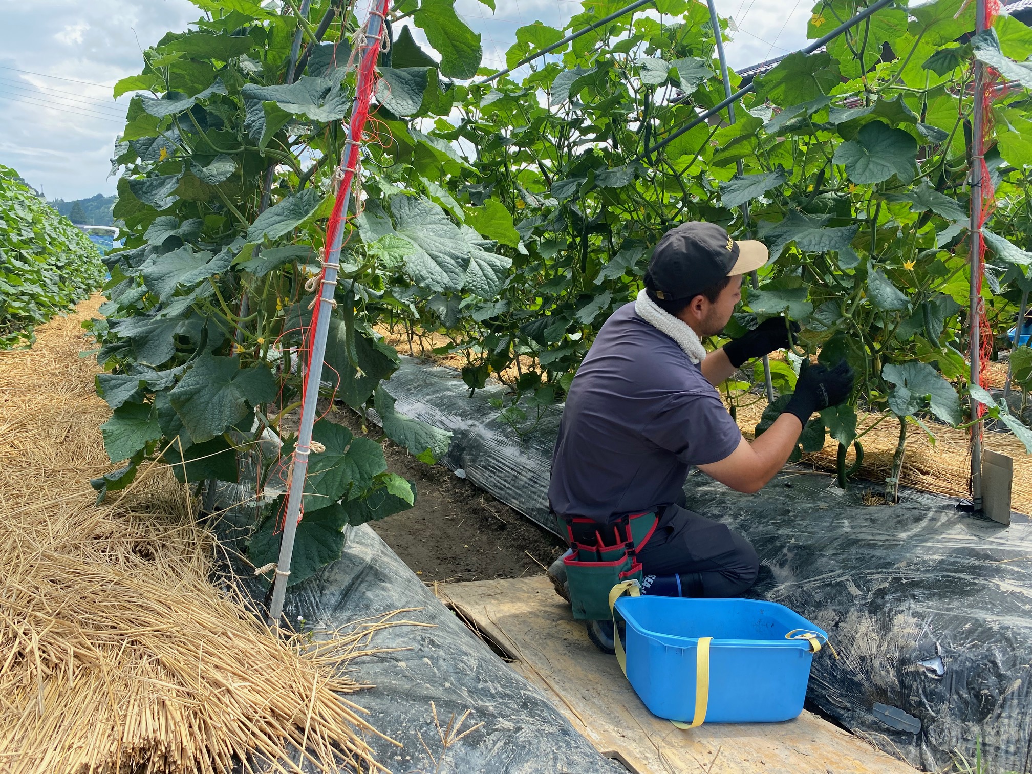 研修生のきゅうり畑が夏の盛り上がりを迎えています!