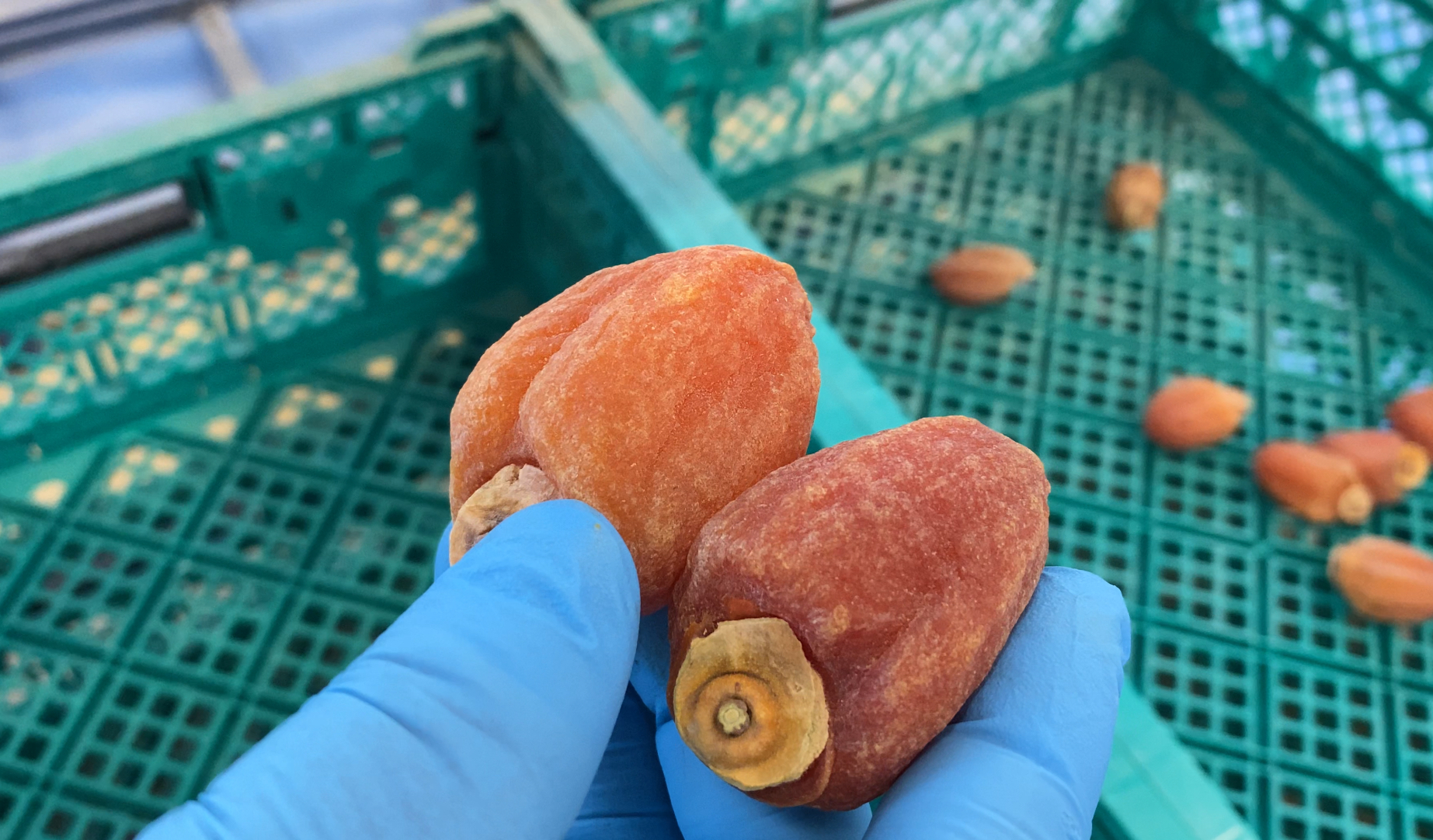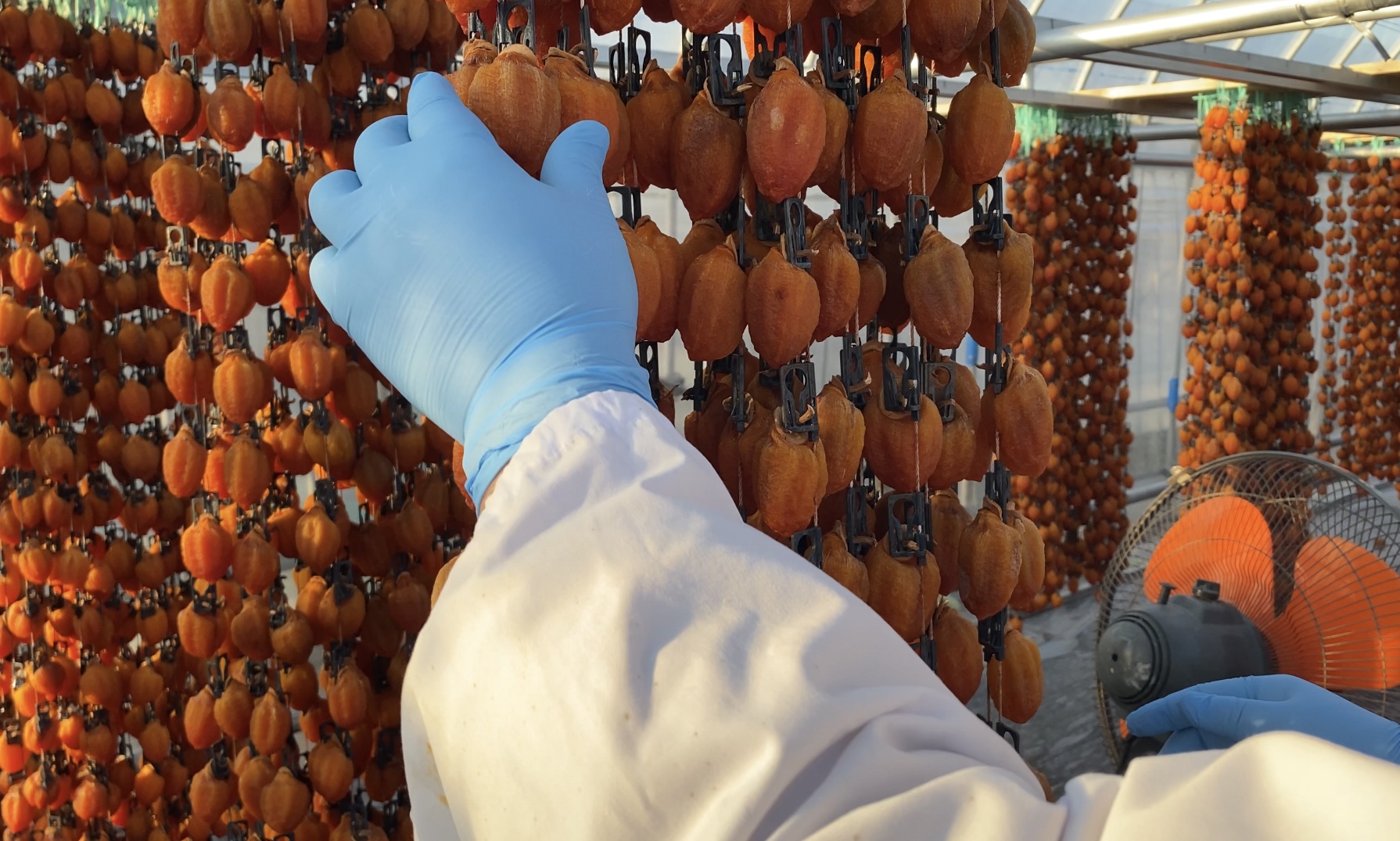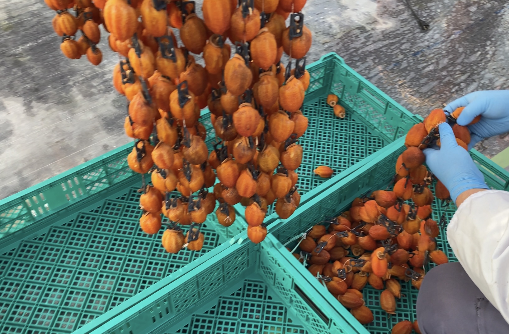 柿を干しあげていく(水分をしぼっていく)前期の工程管理も柿の状態の観察が大切ですが、