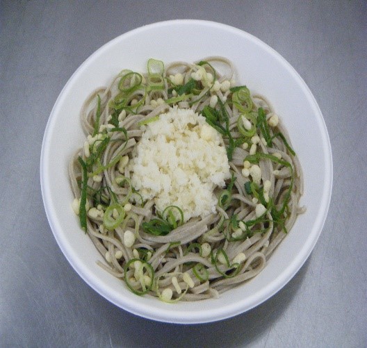 下條村産のそばに伝統野菜の親田辛味大根をたっぷりかけたぶっかけ蕎麦をご賞味ください!
