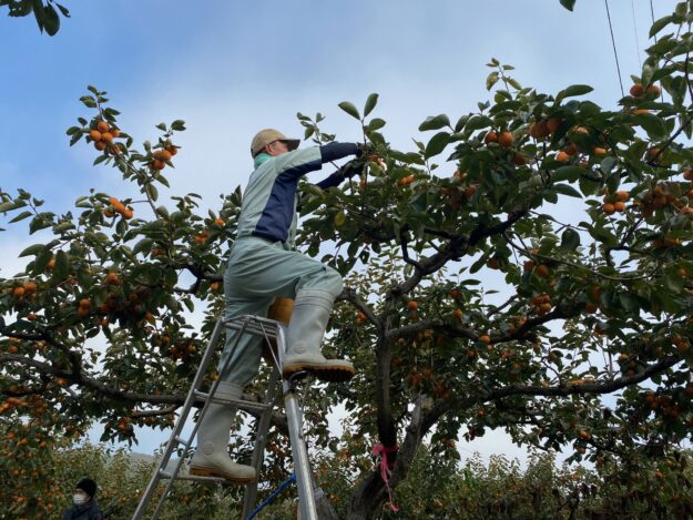 10/27(金) 午前中 市田柿研修圃場の収穫がおこなわれました。 収穫前に樹の状態の確認をしています。 マネージャーからの分析・説明を真剣に聞いています。 ◆5月の摘蕾(てきらい)作業 ◆7~8月の摘果作…