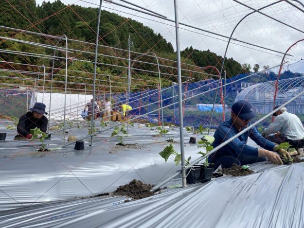 【研修生の歩み】 5/29(水)露地きゅうりの定植がおこなわれました 研修制度By スタッフ2024年6月3日5/29(水) 露地きゅうり圃場の定植がおこなわれました! 定植をしたら、苗が風に負けないように支柱で支えます。 支柱には葦(ヨシ)を使用しています。(研修所敷地内のものを採集しているそうです) 農業用品は…