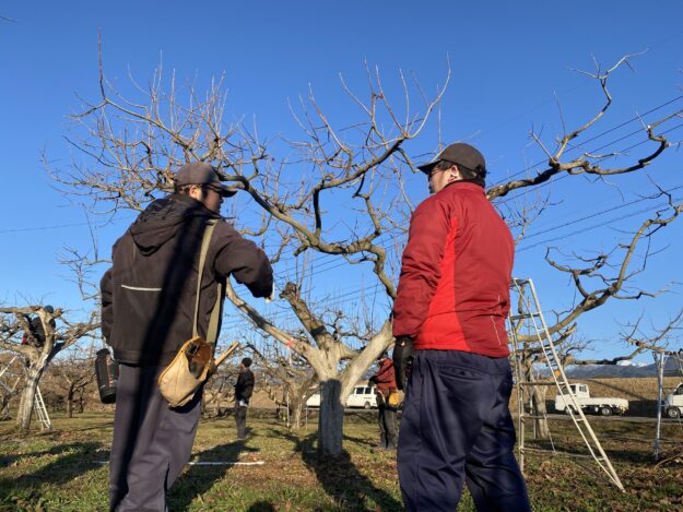 【研修生の歩み】 市田柿研修は剪定が始まりました 研修制度By スタッフ2026年1月8日新しい年となりました🌄 本年もどうぞよろしくお願いいたします🙇 市田柿の出荷は年始に終了し、 研修生は市田柿の剪定を開始しました。 まずは全体で剪定の方法・考え方について指導を受けます。 マネージャーが解説…